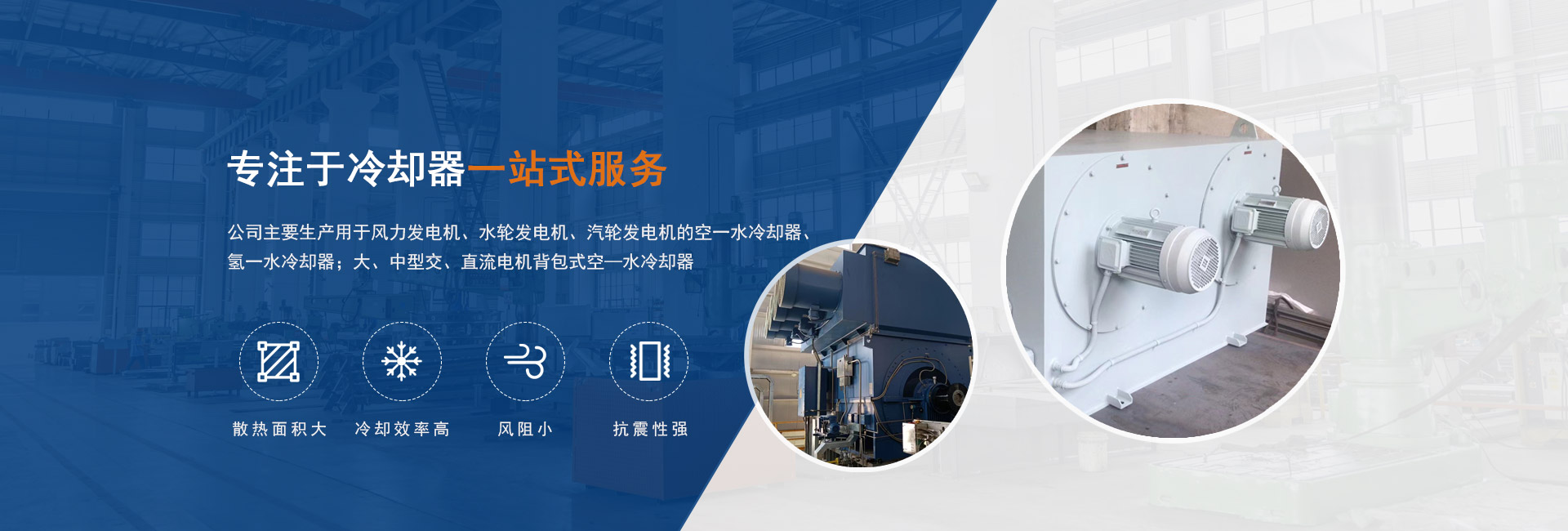 無(wú)錫市特爾銘冷卻器有限公司(原無(wú)錫市雪浪電力冷卻器廠(chǎng))坐落于宜興市竺西工業(yè)園,公司主要生產(chǎn)用 于風(fēng)力發(fā)電機(jī)、水輪發(fā)電機(jī)、汽輪發(fā)電機(jī)的空一水冷卻器、氫一水冷卻器;大、中型交、直流電機(jī)背包式空— 水冷卻器。其中冷卻元件采用整張?zhí)灼浌芗夹g(shù),具有散熱面積大、冷卻效率高、風(fēng)阻小、抗振性強(qiáng)、使用壽命長(zhǎng)等優(yōu)點(diǎn)。